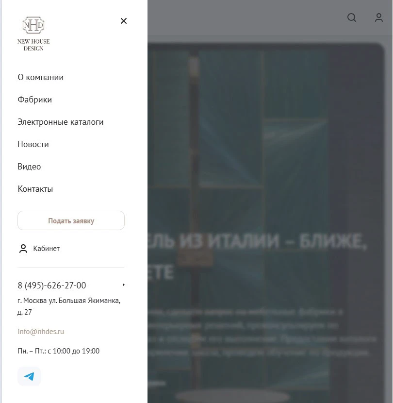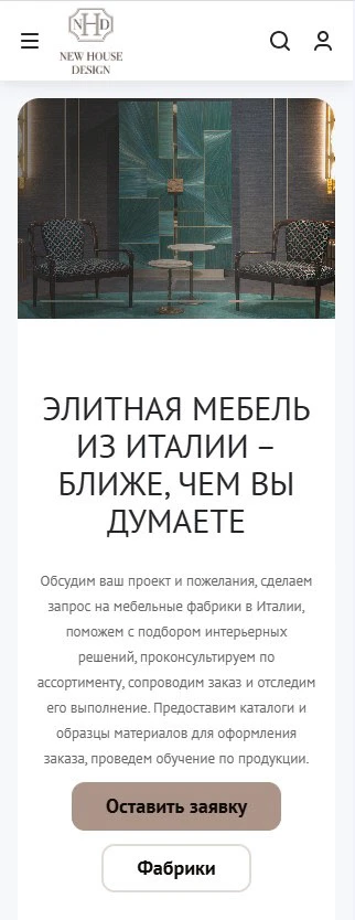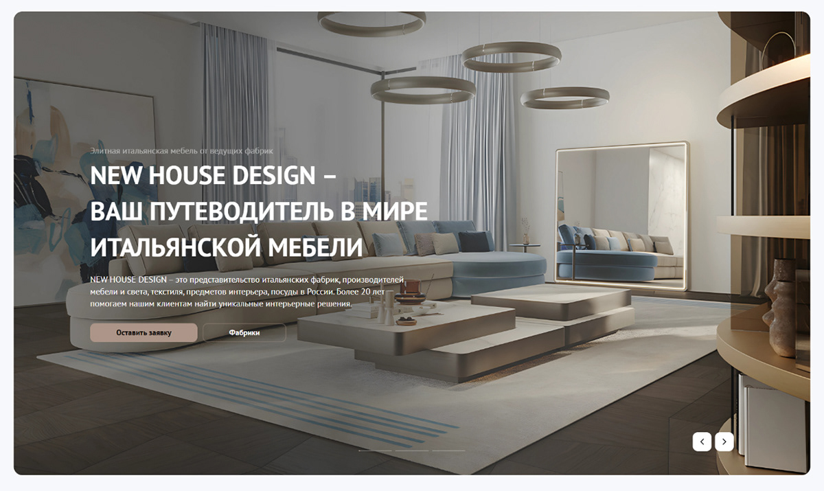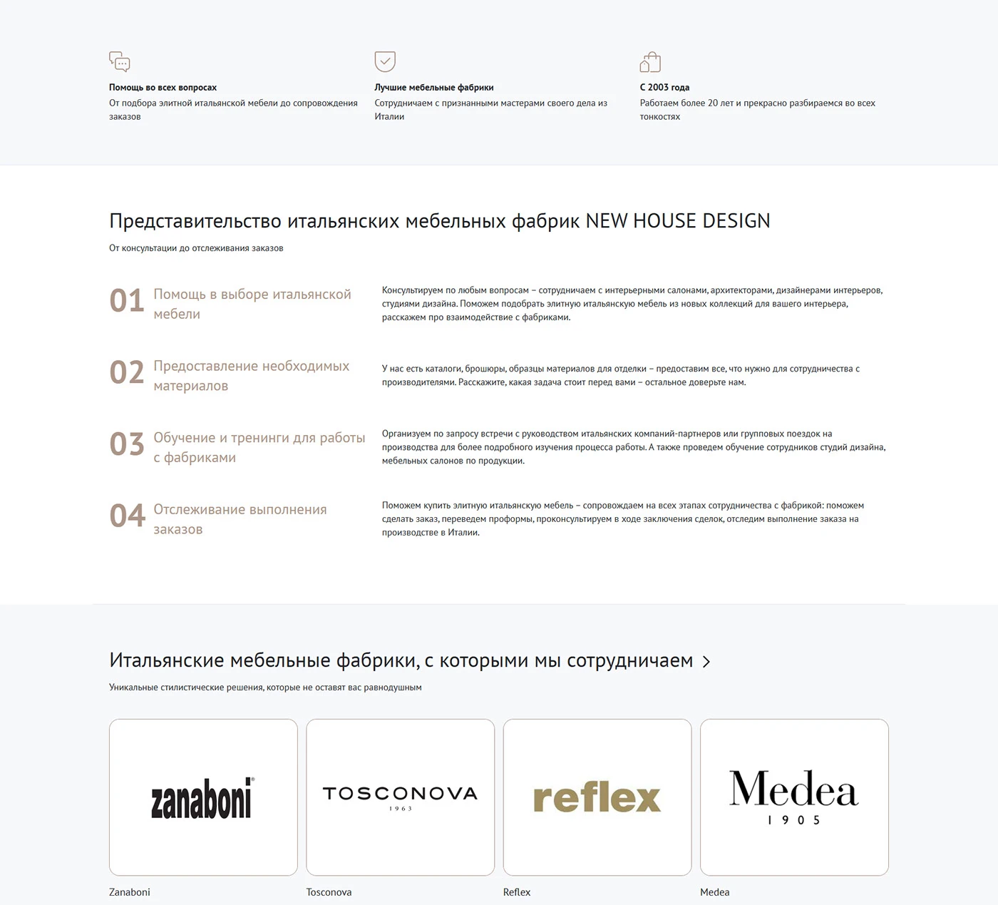 Сайт-визитка для представительства итальянских фабрик New House Design